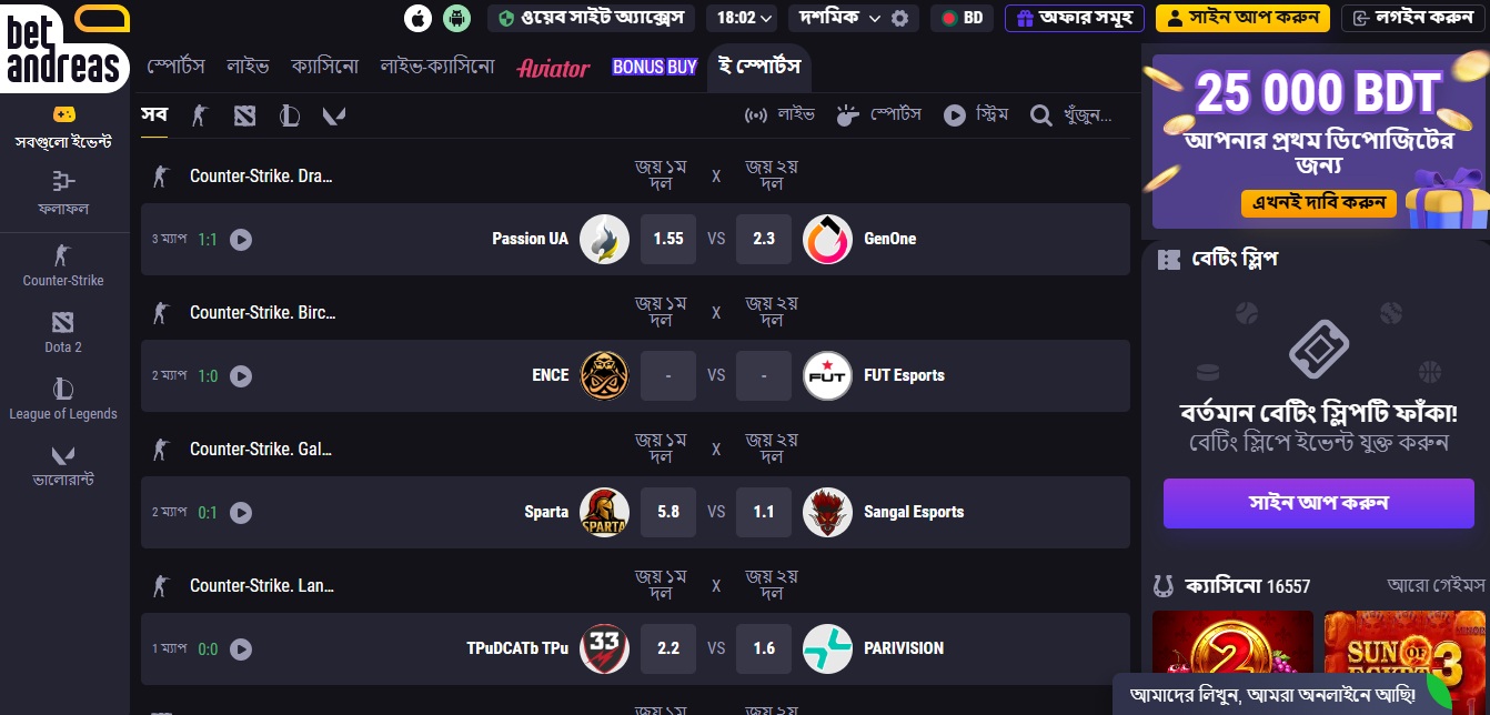 Sign up now and dive into the world of e-sports with Betandreas Bangladesh.